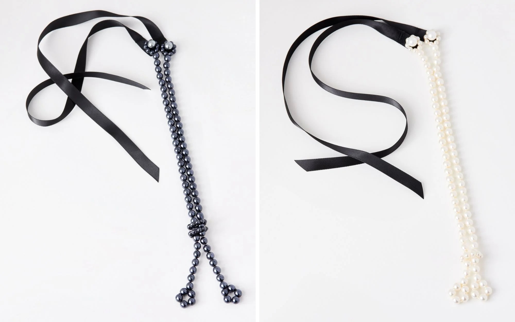 Cada modelo se presenta como un set formado por varios elementos: una prenda de lencería con un collar de perlas, una tira de perlas, dos lazos con botón de perla y dos anillos de perlas. Con ellos se pueden hacer múltiples combinaciones dando lugar a artículos de lencería, collares y pulseras.